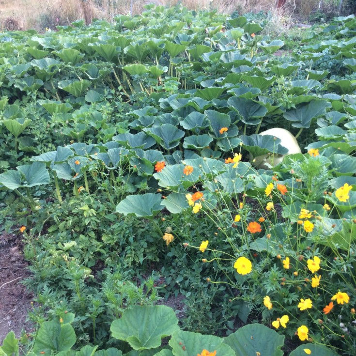 43 degrees a couple nights ago... Drizzle for most of the day today and cooler. Some of the orange cosmos volunteered again in the spot it was planted last year...