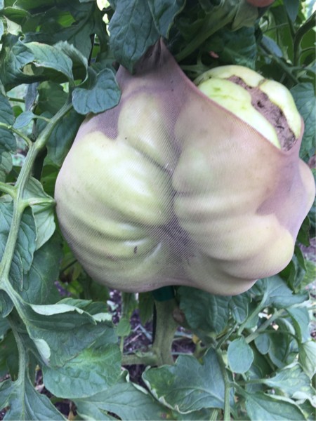 After the first two...I have quite a few young three pounders. Most of these won�t reach there potential because of multiple fruit on the vine and lack of pruning. I am still watching how they develop to make choices for next years plants. This is one from the 8.36 Boudyo.