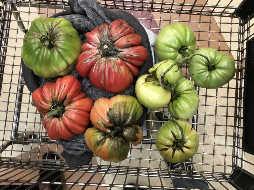 Back to the market again... let�s see what we�ve got. Two are mine... two are Anna�s. And all those little green ones were one truss of zachhearts but one broke off.