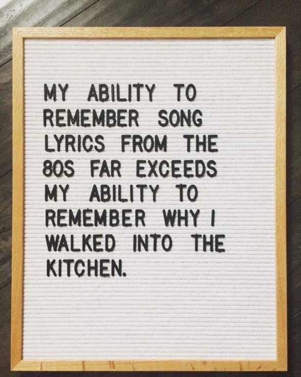 So true, even 60s and 70s songs. I walked down to the pumpkin patch more times than I can count, only to walk back to the house to try and remember why I went to the pumpkin patch.