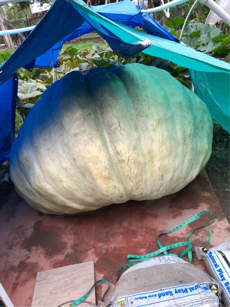 2118 Jutras squash is gonna be a close call as to whether or not it�s judged as a squash or pumpkin. Weight estimated at 1152 lbs. Still gaining slowly. Very tough to measure because of the excessive overhang on the blossom end. Would not be surprised if I�m way off on my measurements so who knows. Might weigh 900 lbs but I hope not.