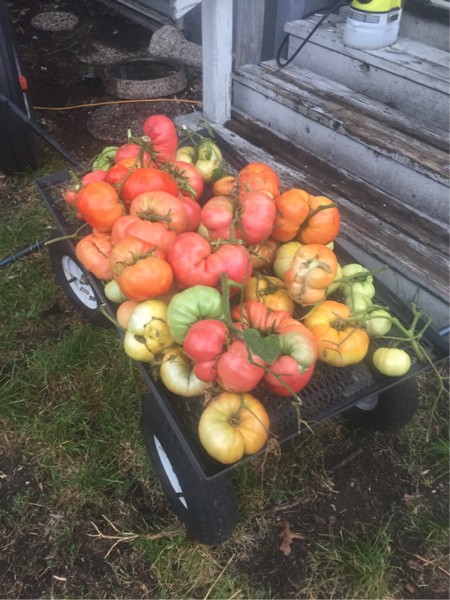 The seed harvest cart gets filled up everyday. I remember a few years ago when I was excited about a 3 pound tomato. Now unless I feel they have a chance to go four..i dont even weigh them. Only about one more month of this work.