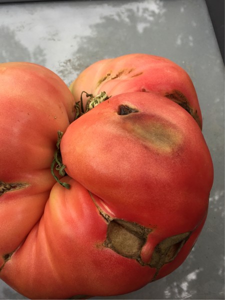 My second biggest is not going to survive storage. It weighed 5.08 off the vine from my 4.38 seed. I had doubts about it making it because of the bruise from the stake. I see the bruise spot going soft...time to harvest some seeds before it starts leaking. At this rate I might be down to 3 pounders by the time Gale Woods arrives.