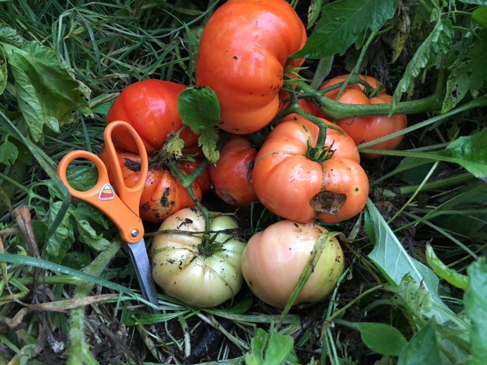 I remember seeing this blossom cluster earlier this year but I ignored it because there were no mega blooms. It was a numerically impressive truss of flowers with around 40 individual blossoms. Indeed these are all part of that original truss. The plant was unpruned and neglected. Hence, they were buried in weeds. This plant had other tomatoes on it as well...!