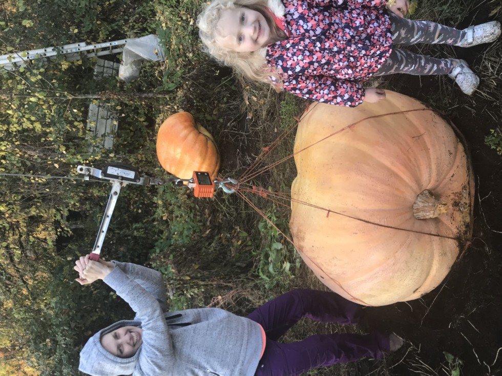 Anna always picks good seeds! She came close to a pb on this one (1472.5 Sherwood) coming in at 541 lbs. A very good conversion of sq ft to pumpkin on this one, because the plant was small... it could have fit in 100 ft or so, it was sparsely spread over 120-140 ft.