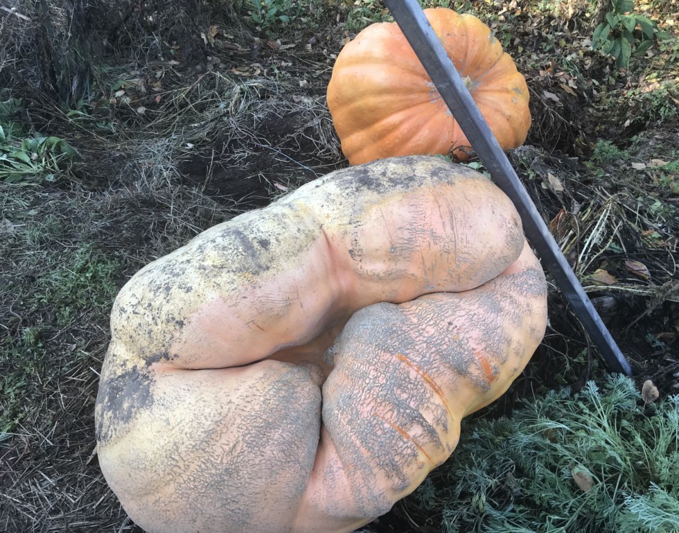 I feel like the long time this pumpkin was on the vine was part of the reason it achieved a relatively good conversion of sq ft of plant to lbs of pumpkin.
