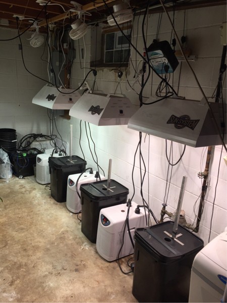All three hydro tanks are running a cleaning solution. Each plant will be in a 13 gallon DWC container and will have it�s own chiller, air pump and 315 watt ceramic metal halide light. Same set up as I finished last winter with. I do not expect to change much this year. Next year should be more interesting with new grow room.