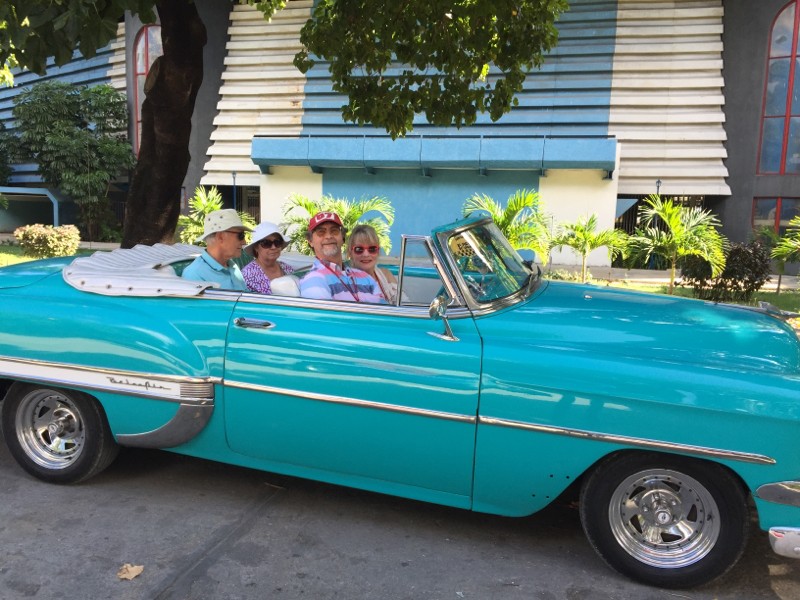 This is the obligatory American convertible in Havana pic! We�re in the front. Our driver spoke English pretty well. I felt sorry for him though, Kathy had a rather continuous stream of questions for him! Hmmm, didn�t see any pumpkins in Cuba.