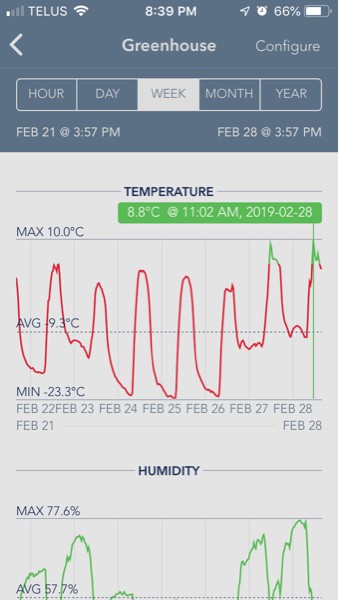 The sun is warm now, starting to heat the greenhouse even when it�s cold. Temp is 10�C warmer at night over 20�C warmer than outside on a sunny day.