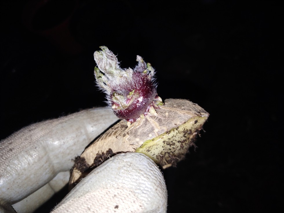 This is a new one on me but the idea is to plant single chits to try to minimise the amount of potatoes per plant.