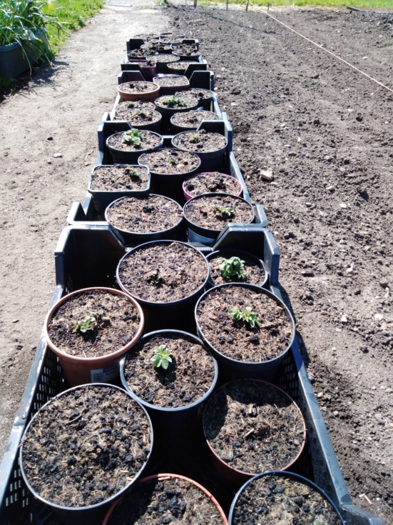 And the kondor potatoes are just starting to come up. Leaving these outside unless we get cold nights forecast as don't want the haulm to get drawn up too much as these will be planted outside.