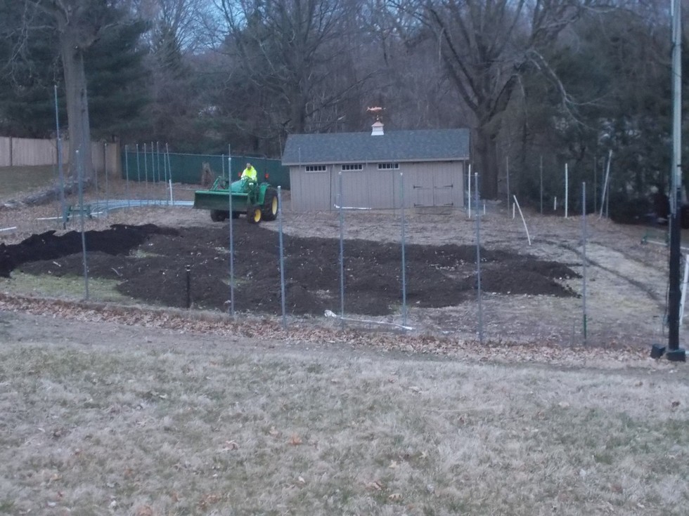 It is great when fellow pumpkin growers help each other out and this is a prime example. I have helped this grower out in the past with soil test results, disease diagnosis, patch tours and general pumpkin help. He returned the favor with delivery of his tractor and operated it to help spread the compost I had deposited in the patch. We were cutting it close to having enough light before the sun completely set, but we got it done just in time.