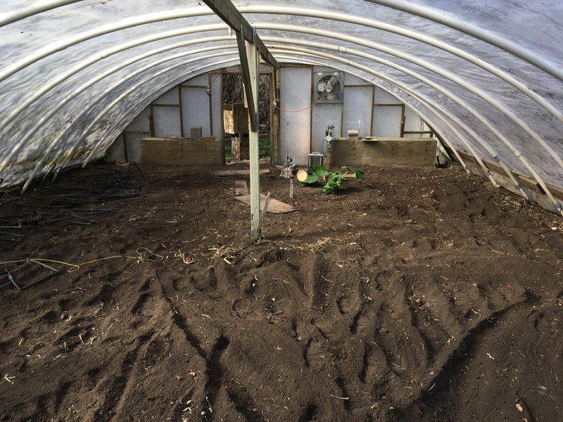 The plant has about 4� of main vine and it would have outgrown the shack by mid week. Wind was light (less than 20k) so I erected the greenhouse. Still cold at night so this is going to cost some bucks for fuel. Hope it warms up soon. Shouldn�t complain about today... 20� C