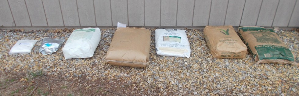 *Listed from right to left Kelp Meal Humic Acid Greensand Alfalfa Ferrous Sulfate Copper Sulfate Manganese Sulfate