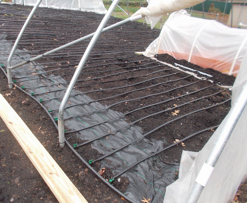 Total of 48 lines each 31ft. long to cover my 40ft x 32ft single plant area Drip Tape Thickness: 15mil. Emitter Spacing in Tape: 8 inches Flow Rate per 100ft @ 8psi: 20 GPH (or 0.34 GPM) Space between Drip Tapes: 9 inches Run Time: Daily for 30-60min. (*This will depend on the season and plant stage of development as I can also control the flow to each line individually, so I may select to have two 30min. irrigation events per day during peak growth and heat.) Estimated Water Usage: 150 gallons per 30min. irrigation over 1,280 sq.ft.