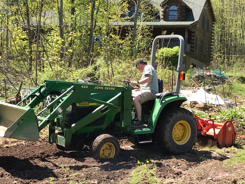 The only thing better than a good friend is a good friend with a tractor. We had a small window last week where the patch was almost dry. My good friend TC was willing to take his new tractor thru town and to my house for some tilling practice. Thank you Tom !!!!
