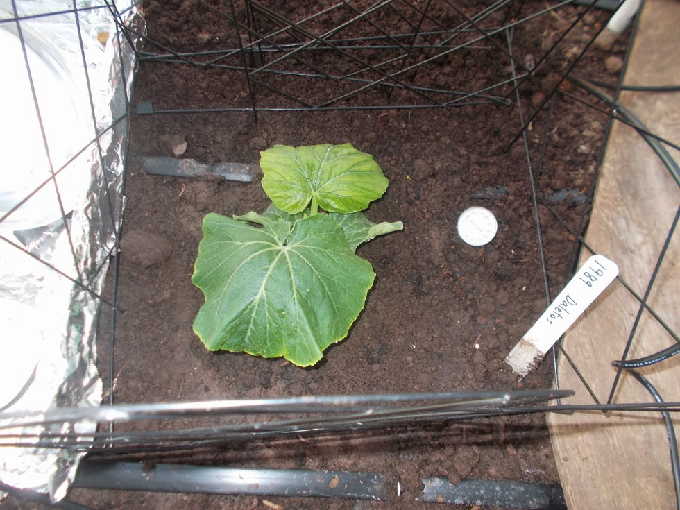 This plant has been a top two from the start but does have some yellowing of the second true leaf. I do plan on adding some Epsom salts at the rate of 2 TBS per gallon as both a soil drench and a foliar application to help it green-up as it also endures some transplant shock.