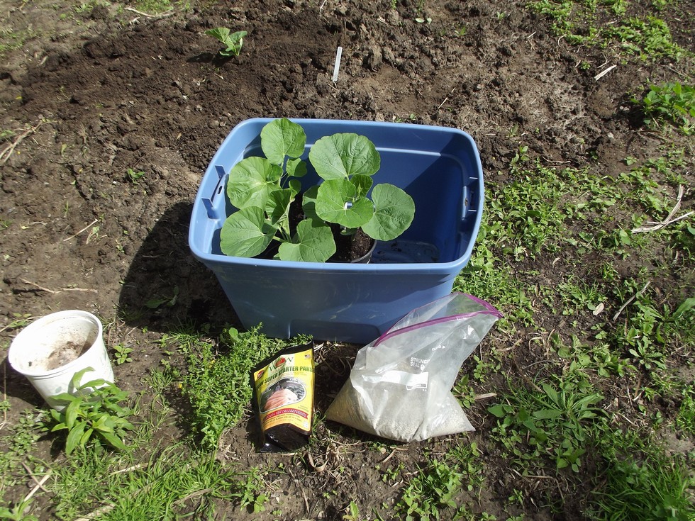 Gourd planting day, finally. 265 Engel is planted in the background. Each plant gets a WOW starter back, and a 50-50 mix of WOW Pumpkin Pro and Jibes Organics all purpose mixed into the hole and backfill soil.