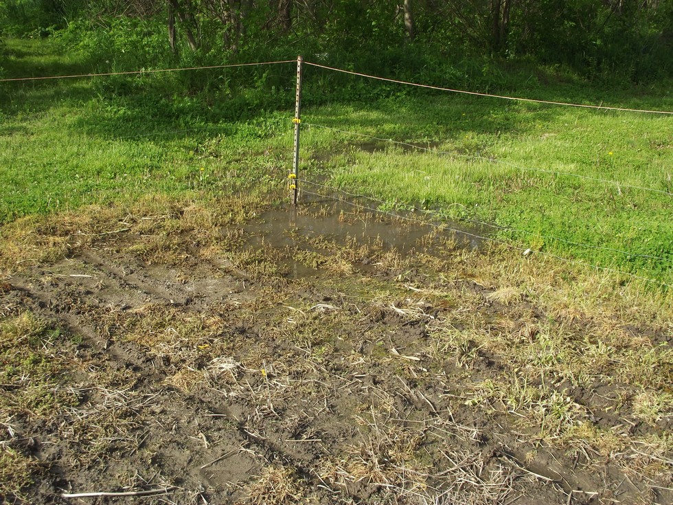 Water standing in a corner of one of the sweet corn patches. Nothing planted yet. The soil is just now getting warm enough. I learned not to rush sweet corn. All you do is end up replanting.