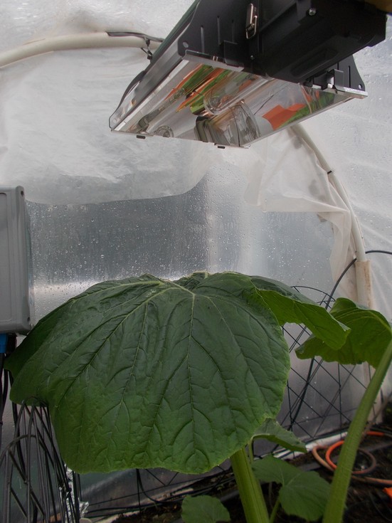 Attention to detail is important and you have to look carefully in the image. Notice the green coloration difference in the area where the grow light is hitting compared to where it is not. It is subtle, but the upper horizontal portion of the leaf is darker green and the area that is flapped down is a fainter shade of green. This provides a visual indication of where the chlorophyll may be more concentrated allowing for greater sugar production. The shading directly correlates with the area that is receiving direct light exposure from the grow light, which further demonstrates the impact this light is having on the plant.