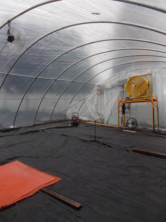 Note that the heater is on in this image, which also shows the placement to allow for the fans to mix the carbon dioxide and also the heat to prevent stagnate and stratified air inside the structure.