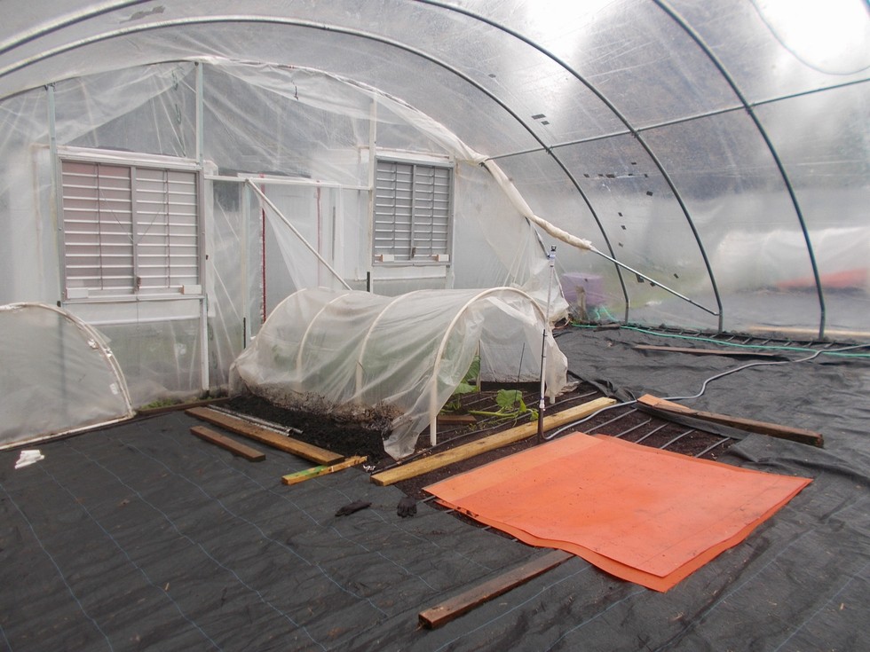 Here is a before picture showing the two structures, with the small cold frame looking like a scale model of the larger one.