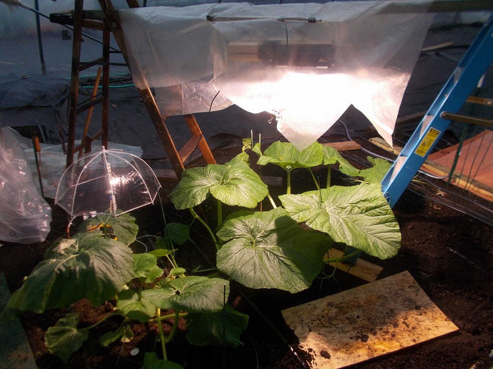 Since there is no rain that will come in contact with the plant and the weather has been very cloudy I decided to set-up the CMH grow light over the plant and turn up the wattage to increase the coverage. It is covered in plastic because I have misters coming on to help increase the humidity and the light needs to stay in a dry environment. I only have this come in from 0400 to 1000 to also extend the day. However, on those very dark and cloudy days I have the option to turn this light on all �day�. The goal is to try and allow the plant to photosynthesize longer and make use of the carbon dioxide that is being supplemented during this extended �day� cycle.