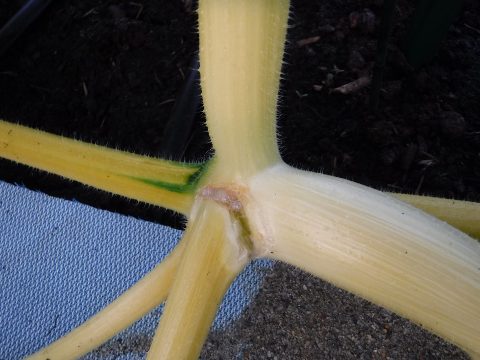 This pumpkin was removed when it was 9 days old (pollinated on June 7th @ 21ft. out) as the cracking started developing on day 7 and seemed to be progressively getting worse at an accelerated rate.