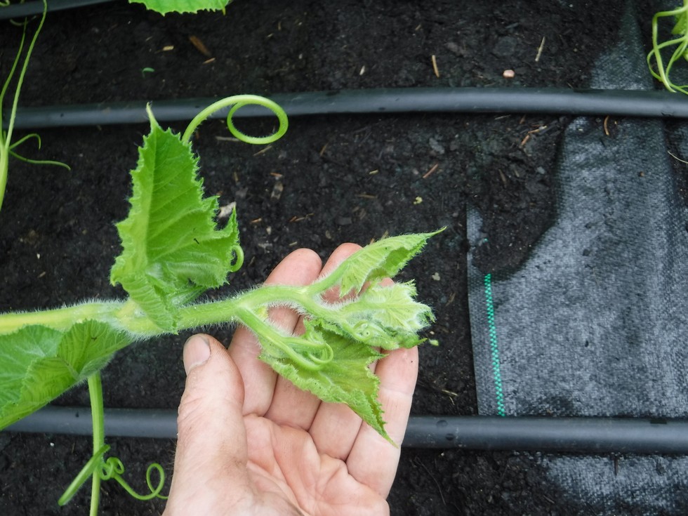 The meristem is the area of high cell division and the growing tip of vines is where there is a lot of cellular division and differentiation taking place. This shows a close-up of the vine in the previous image of exactly how the growing tip looks. For spatial orientation this is about 3ft from the end wall of the structure because this is where the weed block starts.