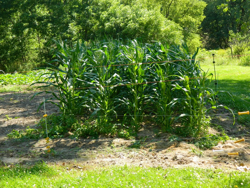 My first sweetcorn plot is now taller than me, tasseling and silking. Won't be long now until we have fresh corn. Hard to believe, but the big storm that ripped up Pete Caspers' greenhouse also flattened 3/4 of this corn. But it is tough and straightened up on its own.
