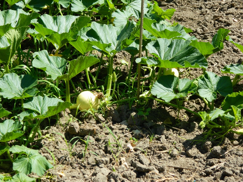 1293 Witter Benson is coming along. I am using some tertiary vines to fill in where the critters ate secondaries. I saw another adult SVB and some cucumber beetles this morning. Bugs have been scarce, just one shot of Merit and Sevin has been used so far. This evening after the bees are gone I will give them another shot of Merit and water it in. As hot and dry as the weather is, the plants should suck it up fast. After watering I will give them a shot of bifenthrin insecticide and mancozeb fungicide.