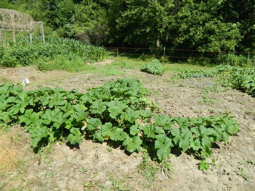 Some of the field pumpkins. The small one is the one I direct seeded in June. The rape/ryegrass cover crop has deteriorated and weeds are starting. Jacob did a good job hoeing weeds around the electric fence, ao he will get to hoe these weeds.