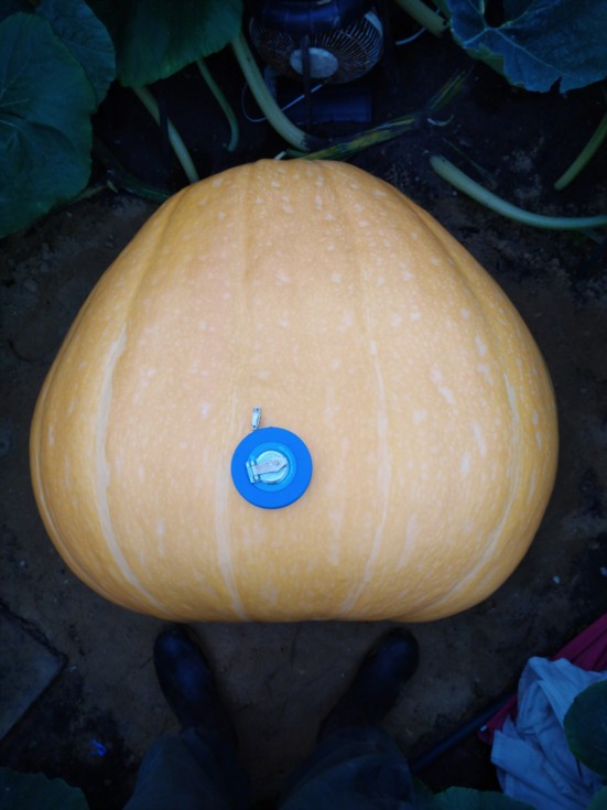 2255 is at day 37 and tapes 360 lbs. This pumpkin has been gaining a steady 20 lbs a day for the past week. Not great gains but happy with this fruit, it started out a weird shape but has filled out nicely now. I will be glad to have this if I lose the 2433 pumpkin