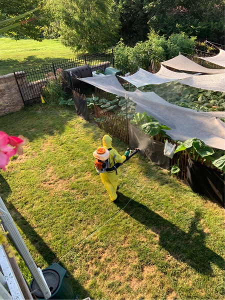 My wife caught me in action spraying.