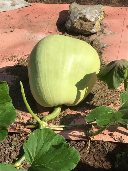 Val and I spent some patch time this weekend We do have a squash and pumpkin set at my Moms patch. The plants are small with limited secondary�s growing but at least we have something to stare at. The squash is gonna have a crazy shape. The stem is bending low as I didn�t get it elevated early enough.