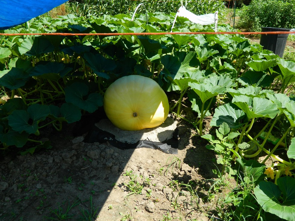 Our best pumpkin is this pathetic little wheel on the 1442,5 Caspers. 27 days old. We didn't plan on keeping this one, but everything else aborted. I didn't measure it, figured it would just depress me. Last year at this time we had one measuring over 700#.