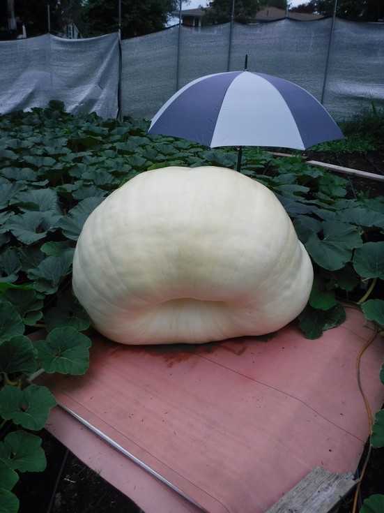 Overall this pumpkin continues to hold a symmetrical shape. The leaves are small and low and the wide and tall shape to the pumpkin makes it look impressive despite the smaller than anticipated numbers. The plant looks great (as will be shown in the next couple postings) so the less than expected growth is a bit of a mystery, but it is growing.