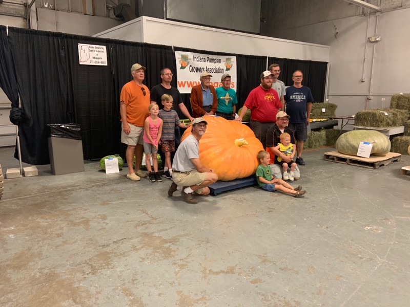 Indiana State Fair weighoff today, the growers posed around Phil Groenewold�s winning fruit, it also took the Howard Dill award.