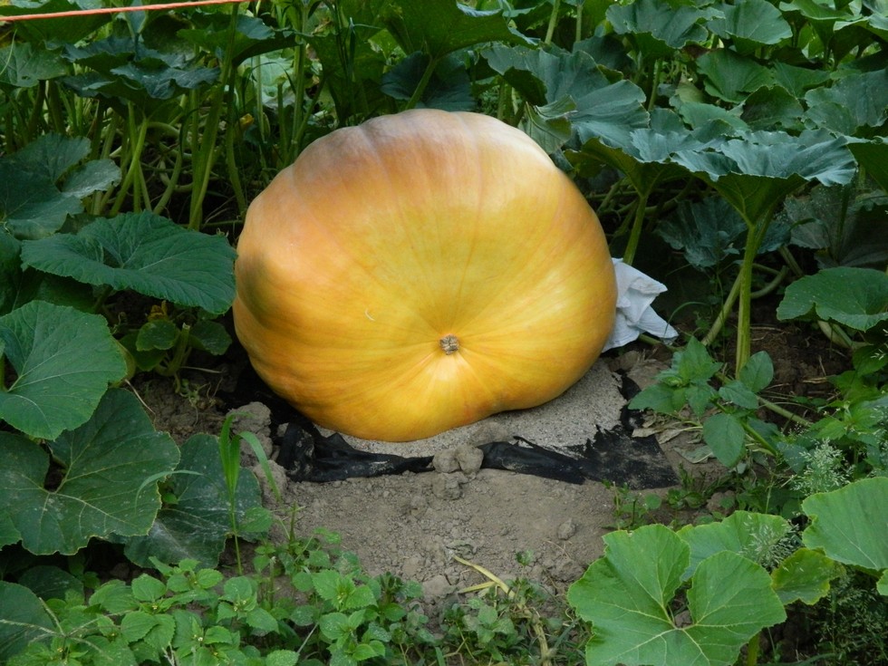 I hope the Caspers pumpkin starts growing. Nice shape and color.
