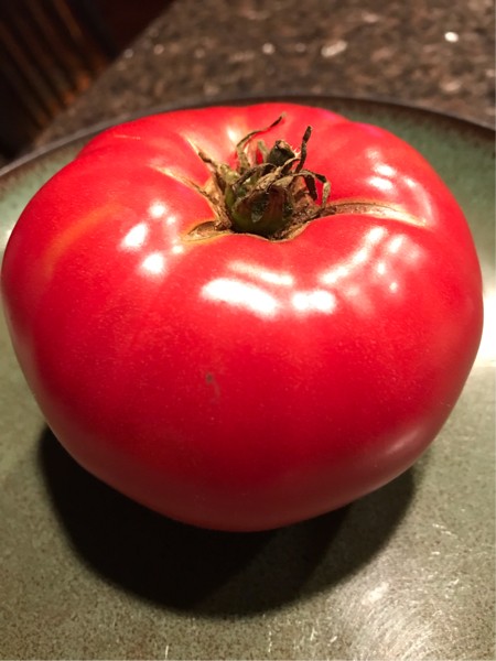 And we found one of Vals beefsteak eaters we could enter in the most perfect tomato category. This one was almost candy apple red. A unique color. A beauty