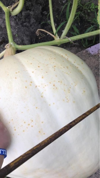 Well my season was over in one night. The other morning I came out and saw these little rot spots on both of my kins but I kept them on to see if it got better and it got worse. I'm going to pick and weigh them either tonight or tomorrow. I would like to say thanks to everyone who got me this far.