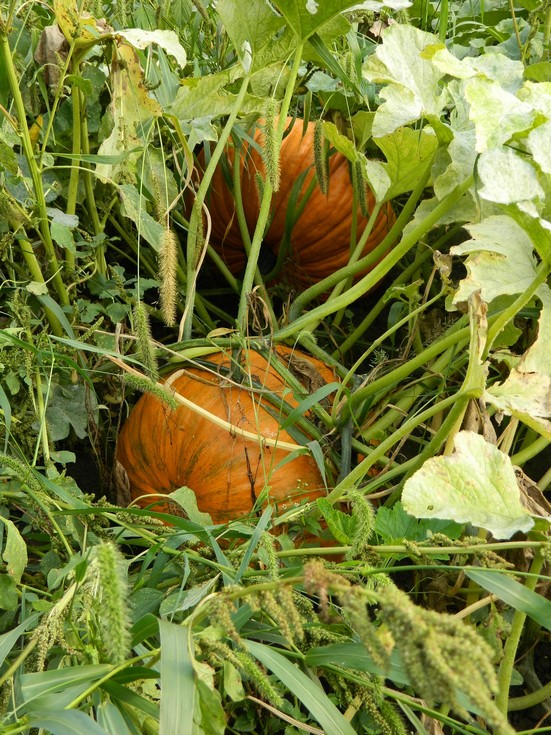 97 McWilliams plants are throwing mostly nice round pumpkins, with a few flattened out like a Cinderella. Hot dry weather hurt the size. Now it is warm and wet.