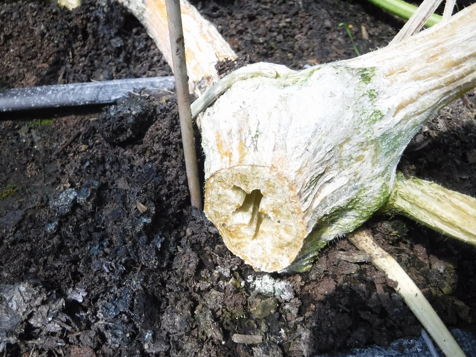 After drilling holes in the main vine there was a section that was determined to be hard all the way through. The vine was cut at this location and some degree of internal rot, so I went one more node and all looked good. After a day the area healed over nicely as can be seen in the image.