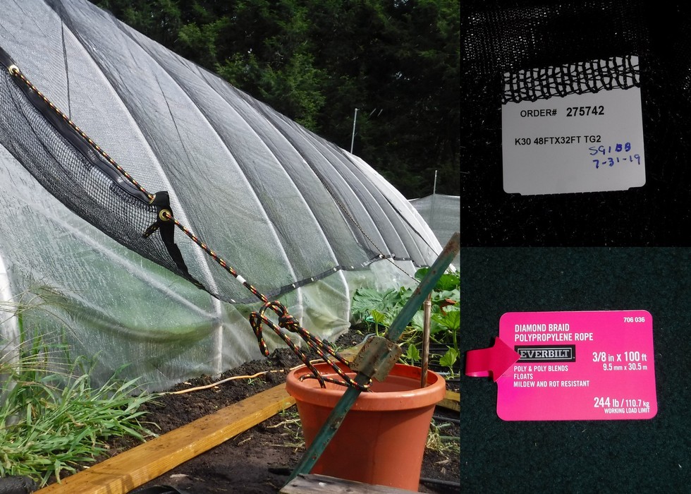 Here are the details of the products used to make my shade cloth set-up. It is easy to pull over the structure if the day is going to be full sun, but I can also easily remove the netting on days of less light intensity to maximize the light received by the plant while limiting the unneeded heat.