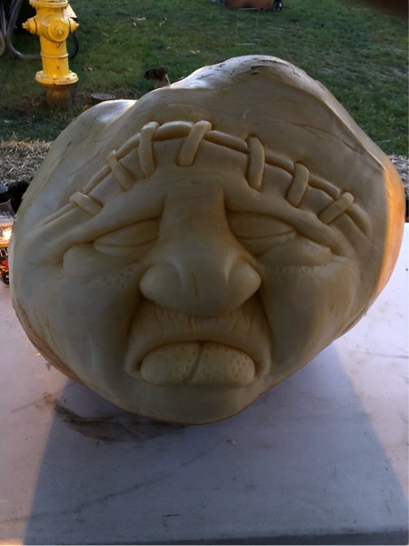 Another fall fest today. A Little 100 pound runt made it till late October. Soft spots and splits. still was a nice one to carve.