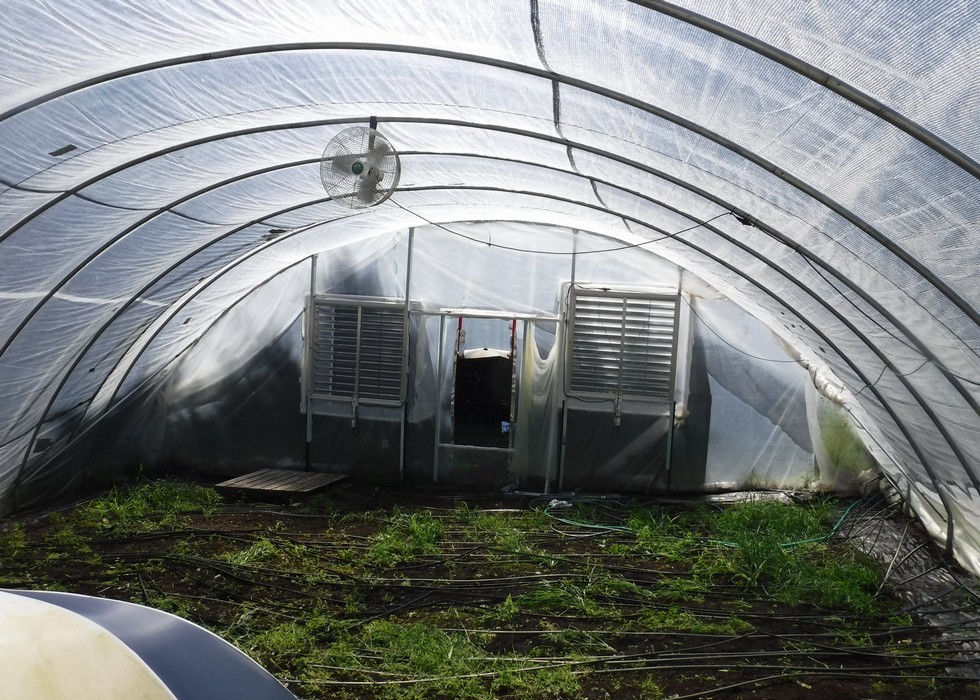Also, the 30% shade netting is over the structure and the impact on the light penetration even with carbon dioxide enrichment is not hindering plant growth. However, the added benefit is reduction in the heat that needs to be exhausted which is intended to lessen the plant stress so the misters put in place can be more effective.