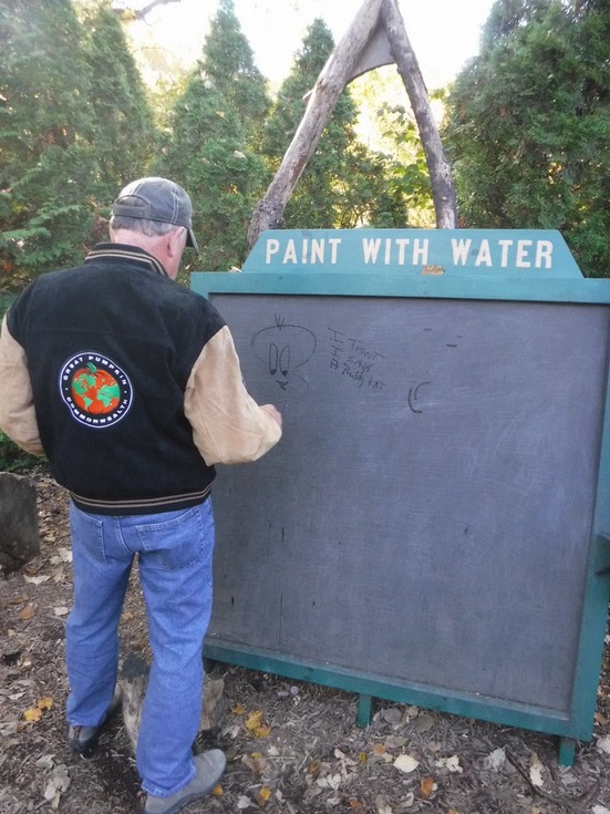 Here is Dan taking advantage of the lack of kids competing for the �paint with water� station early in the morning. When we came by later in the day this was a very popular activity.