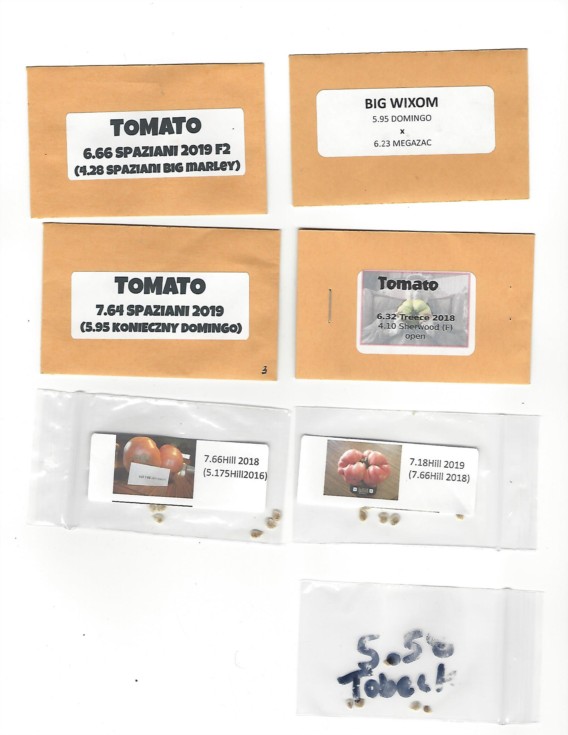 2020 Tomato Line Up. Deformed Porterhouses will be grow in small pots just to see if the tomato continues to evolve with deformity. 7.66 seeds will be grown in 5 gallon pails along the fence by the neighbor's garden. His watering system usually waters my yard so these plants should get watered by my neighbor every day.