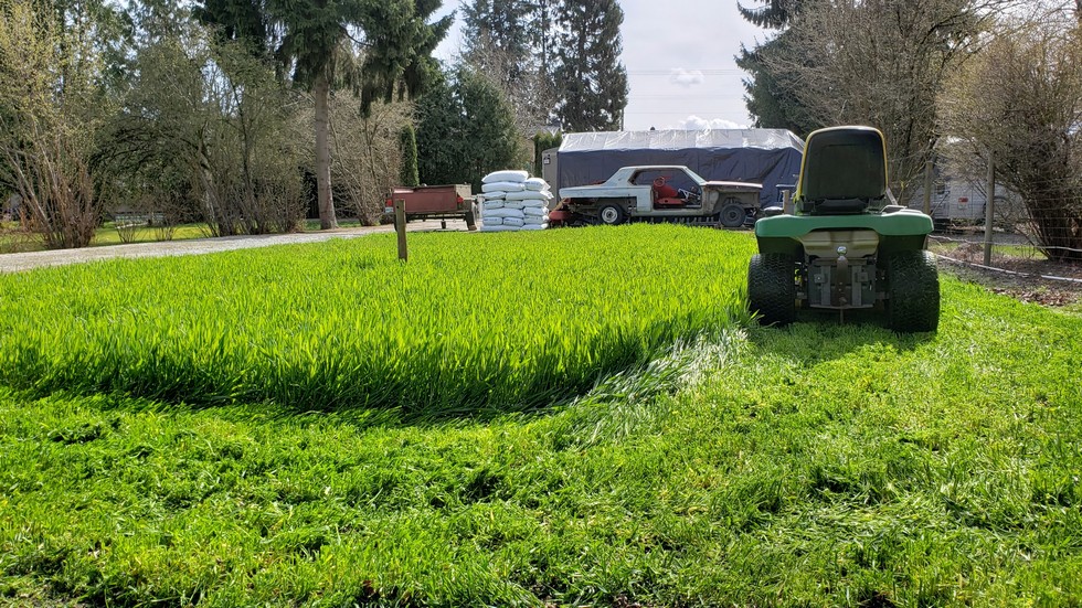 The fall rye cover sowed in October last year is really starting to grow. Giving it a cutting before we cultivate in a couple of weeks.