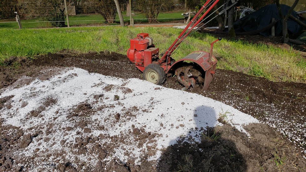 Mixing the amendments into the 1st cultivation with a little tiller. Now all the top layer will be removed and set aside.